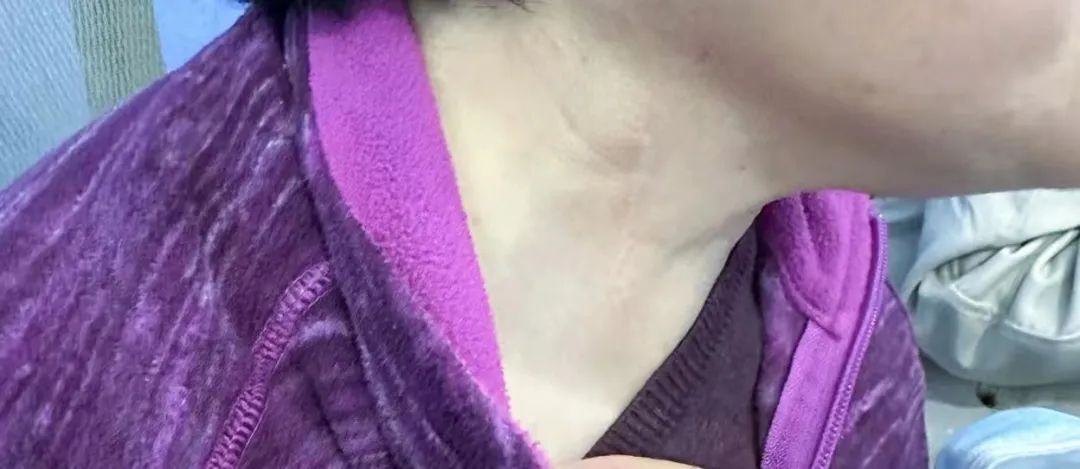 圖1 患者術(shù)后切口,右頸靜脈入路傷口愈合良好