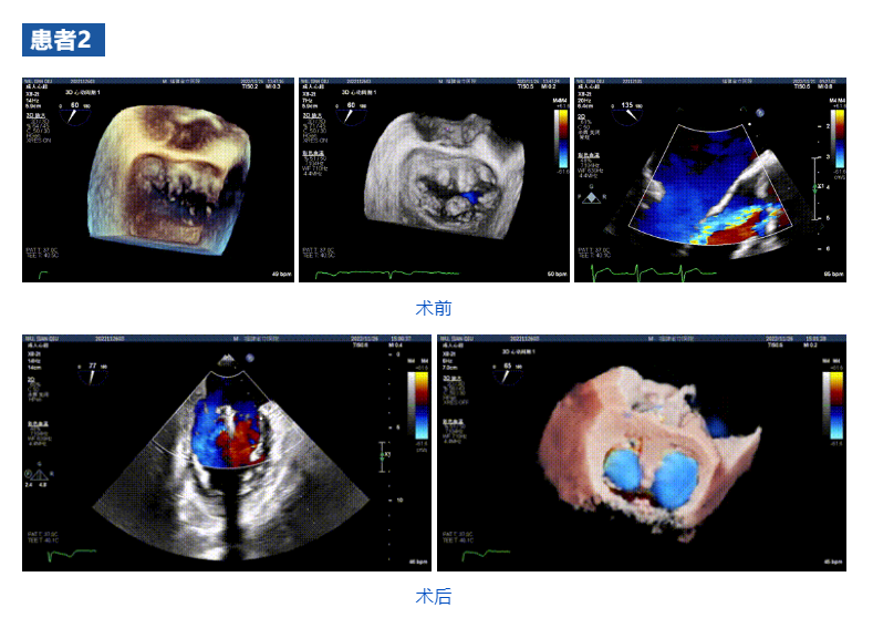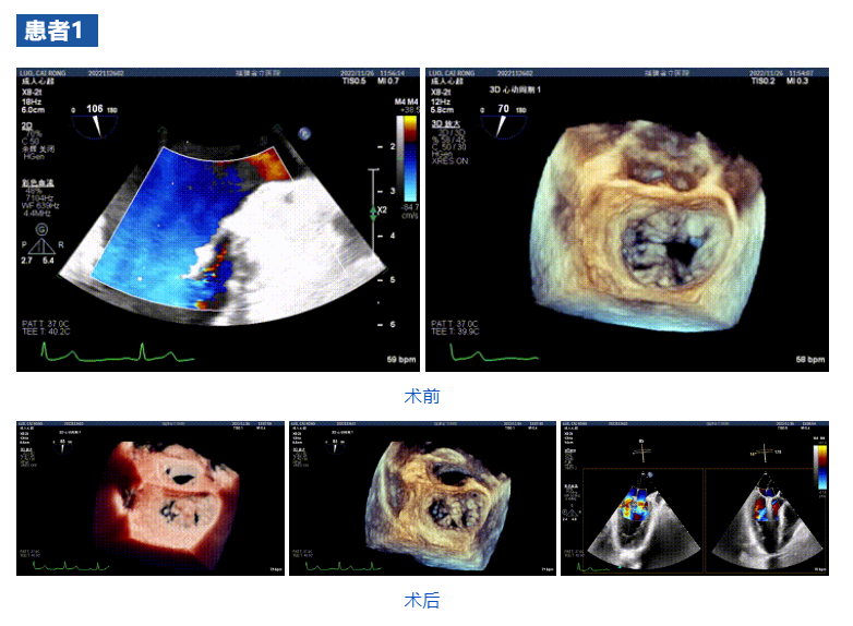 接受治療的三例患者均為器質(zhì)性重度二尖瓣反流(DMR)患者,術(shù)前超聲提示二尖瓣后葉脫垂伴4+反流,左室舒張功能減退。郭延松教授攜同團(tuán)隊(duì)成員陳新敬副教授和洪景宣、方明程、楊清勇主治醫(yī)師、心外科丁杭主任以及超聲科賴寶春、葉振盛主治醫(yī)師共同進(jìn)行病情討論??紤]到患者高齡、基礎(chǔ)疾病多、STS評分高,為外科手術(shù)極高危患者,不適合進(jìn)行外科開胸二尖瓣手術(shù),因此決定為患者實(shí)施經(jīng)導(dǎo)管緣對緣修復(fù)介入術(shù)(JensClip經(jīng)導(dǎo)管瓣膜夾系統(tǒng))。