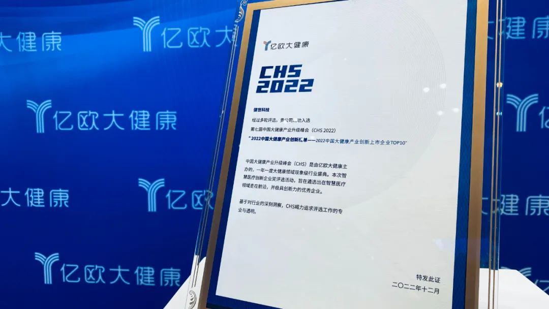 12月29日,寧波健世科技股份有限公司(”健世科技“)在第七屆中國大健康產(chǎn)業(yè)升級(jí)峰會(huì)(CHS2022)年度盛典獲評(píng)”2022中國大健康產(chǎn)業(yè)創(chuàng)新上市企業(yè)TOP10“。